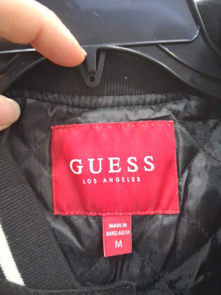 MENS GUESS LONG SLEEVE ELASTIC CUFFS bomber jacket - medium - black/white (style: x2bn02 d2xp7)