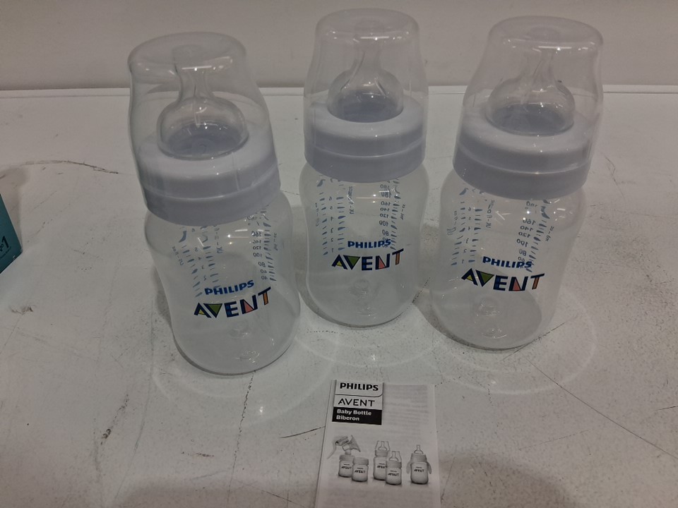 3 Philips Avent Anti-colic Wide-Neck Baby Bottles- 9oz- 1+ MONTHS
