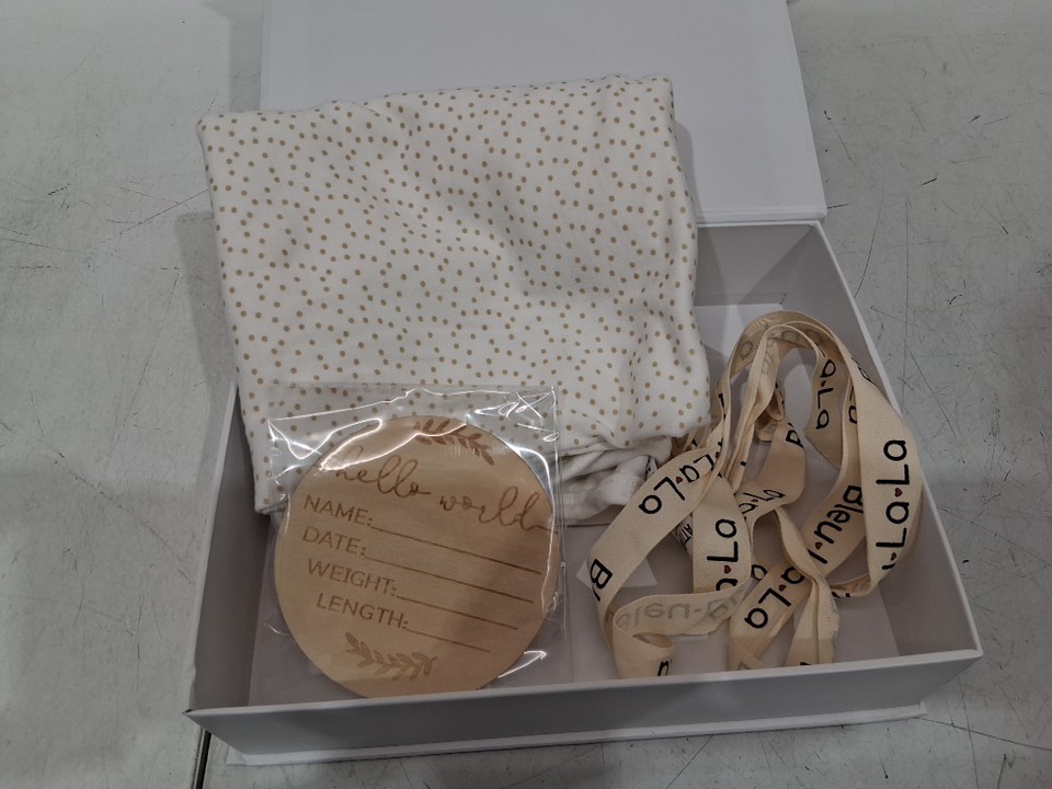 NEWBORN BLEU LA LA STERLING BABY SWADDLING BLANKET WITH NAME TAG - OSFM - WHITE/BEIGE