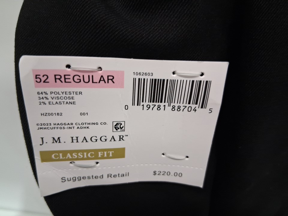 mens j.m haggar classic fit suit jacket and tailored fit dress pants set - 52 REGULAR JACKET - 54W 32L PANTS - black