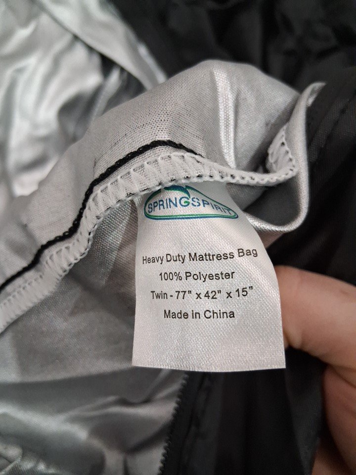 2PK SPRINGSPIRIT WATERPROOF MATTRESS BAG FOR MOVING/STORAGE WITH ZIPPER AND STRONG HANDLES - TWIN - BLACK