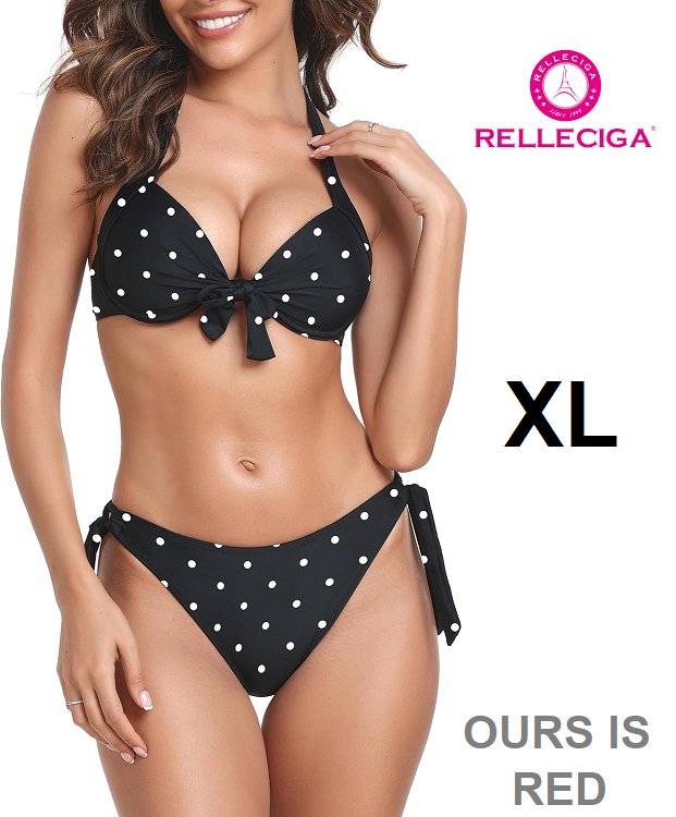 2PC WOMEN'S RELLECIGA PUSH-UP BIKINI SET - EXTRA LARGE - RED POLKA DOT