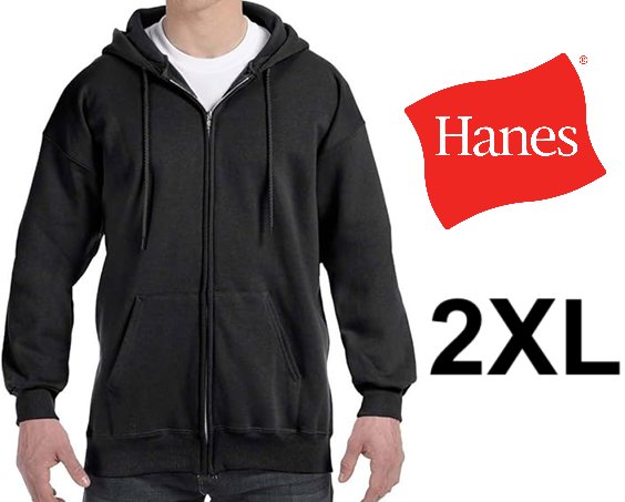 men's hanes Ultimate Full-Zip Hoodie - 2xl - black (style: 15763)
