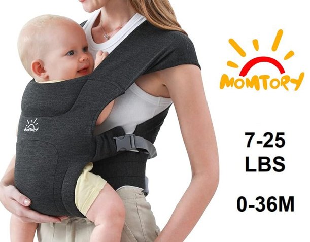 momtory cozy baby sling carrier with hook and loop for easy adjusting - 7-25lbs - GREY(model: ym019)