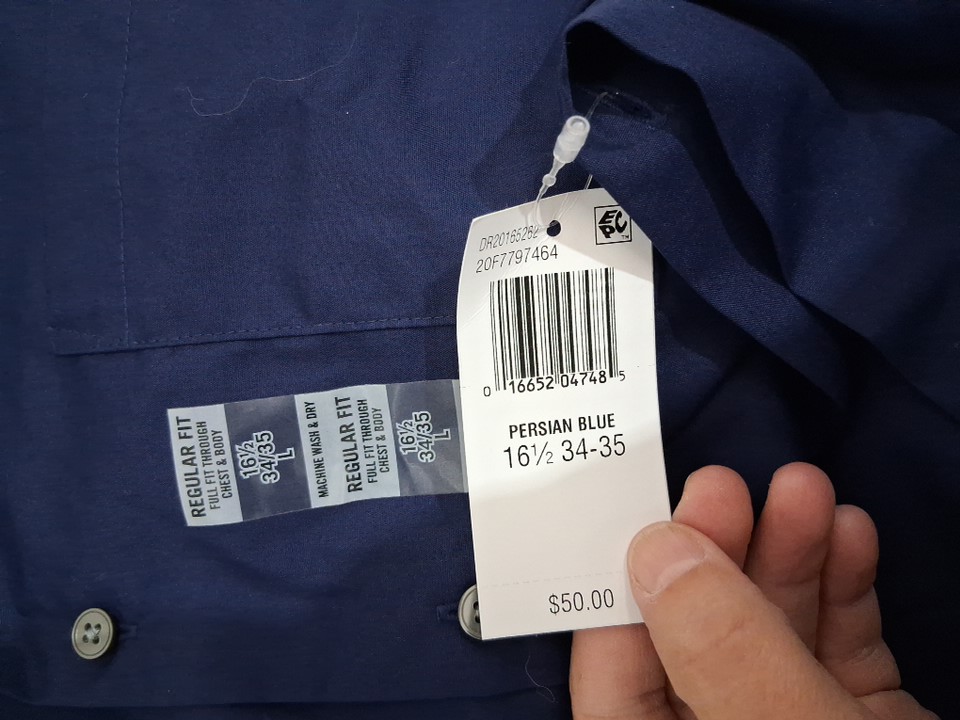 MEN'S VAN HEUSEN DRESS SHIRT REGULAR FIT POPLIN SOLID - LARGE, 16.5, 34/35 - NAVY