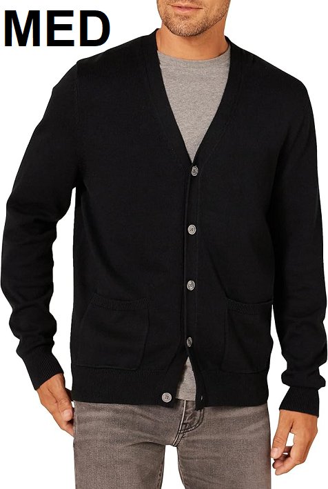 MENS AMAZON BASICS COTTON CARDIGAN - MEDIUM - BLACK - (MODEL:AE1898792)