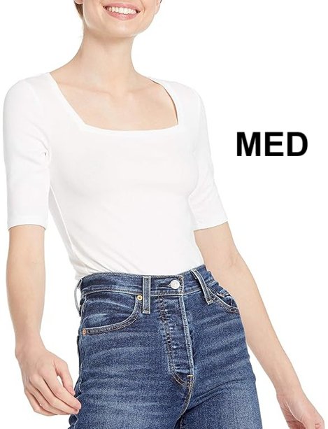 WOMENS AMAZON ESSENTIALS SLIM FIT HALF SLEEVE SQUARE NECK SHIRT - medium - WHITE (MODEL: AEW30001SP21)