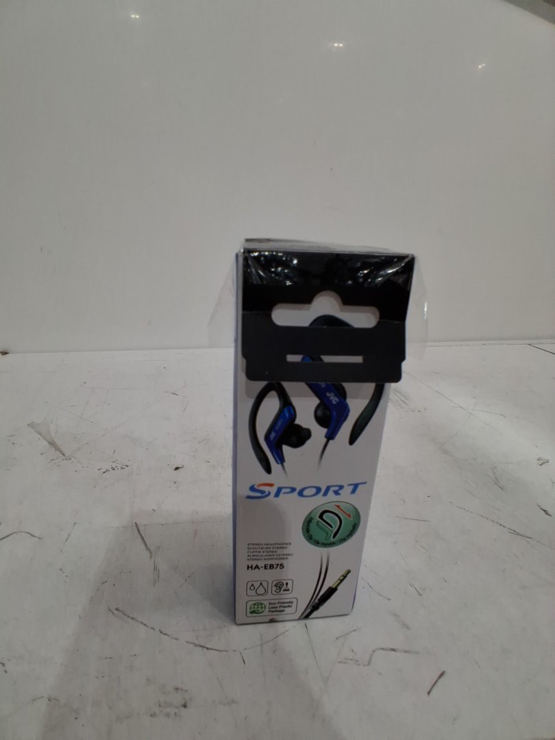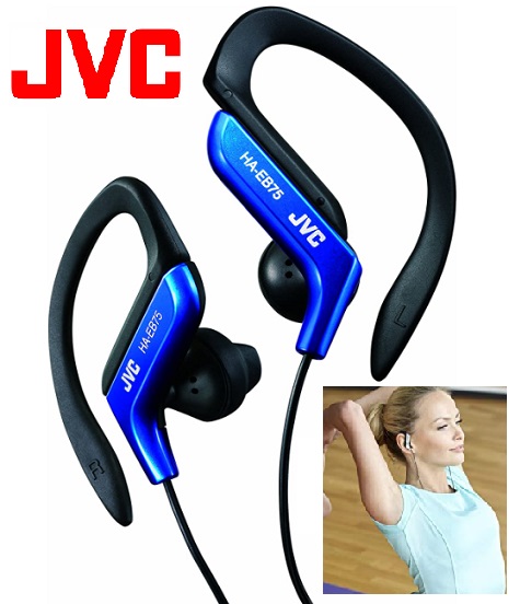 JVC SPORT STEREO HEADPHONES WITH ADJUSTABLE EAR CLIPS - BLACK/BLUE (MODEL: HA-EB75)