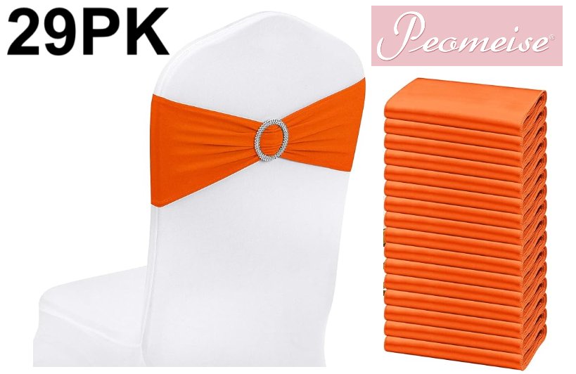 29pk peomeise Spandex Chair Sashes Bows with Buckle Slider - 13.78" x 5.12" - orange