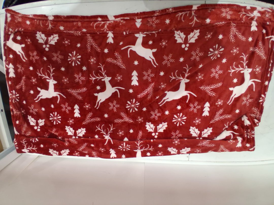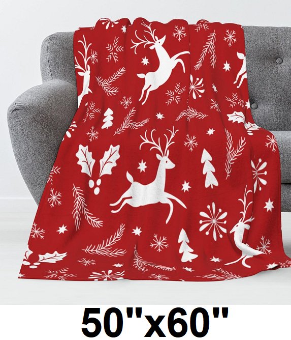OEKO-TEX CHRISTMAS WHITE REINDEER THROW BLANKET - 50"x60" - RED/WHITE