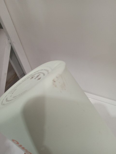 there is multiple dent and scuff on this bottle as well as the straw is missing.