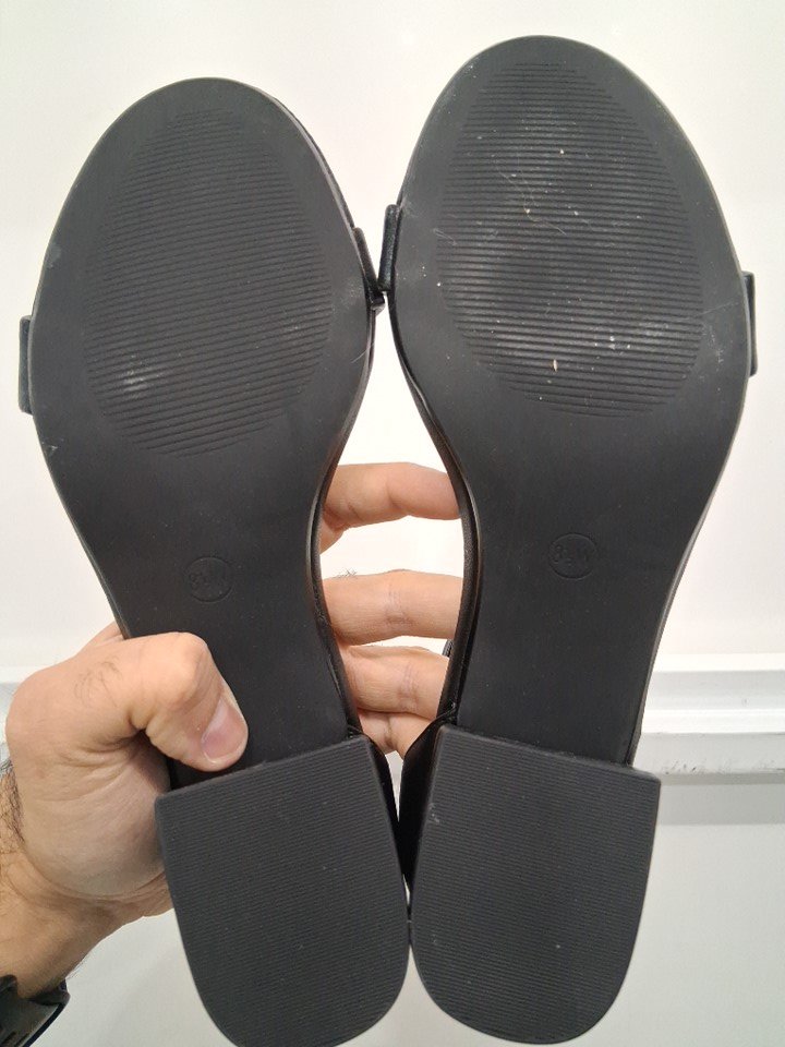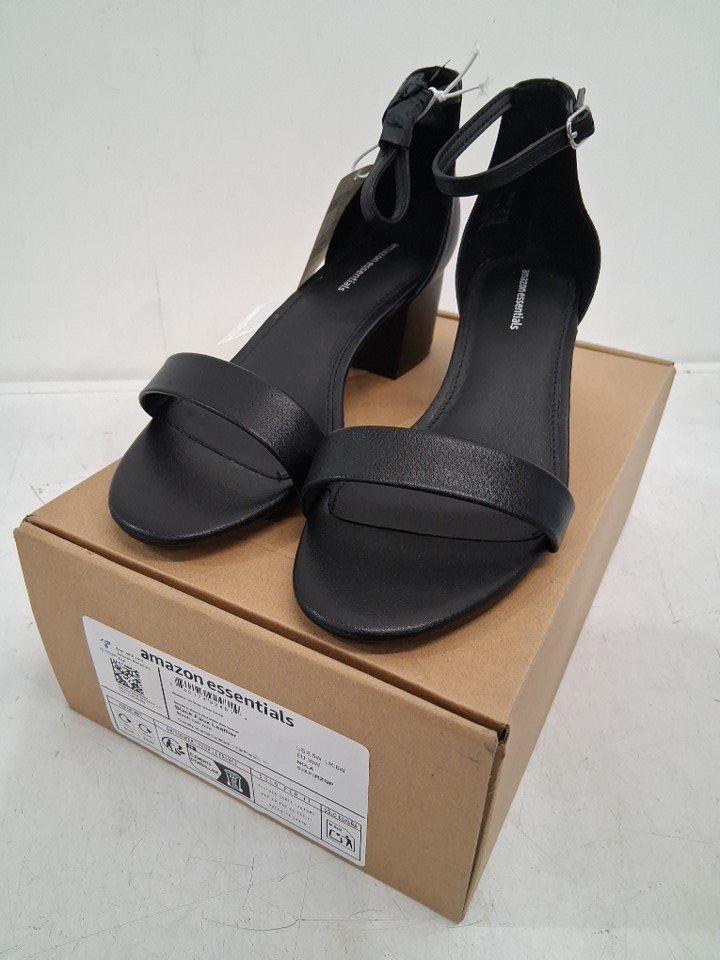 WOMEN'S AMAZON ESSENTIALS TWO STRAP HEELED SANDALS - 8.5 WIDE - BLACK (style: nola)