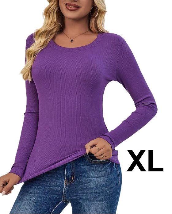 WOMEN'S ASAIR LONG SLEEVE RIBBED MODAL TOP, STRETCHY - XL - purple