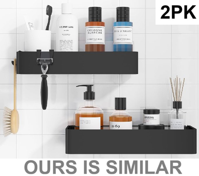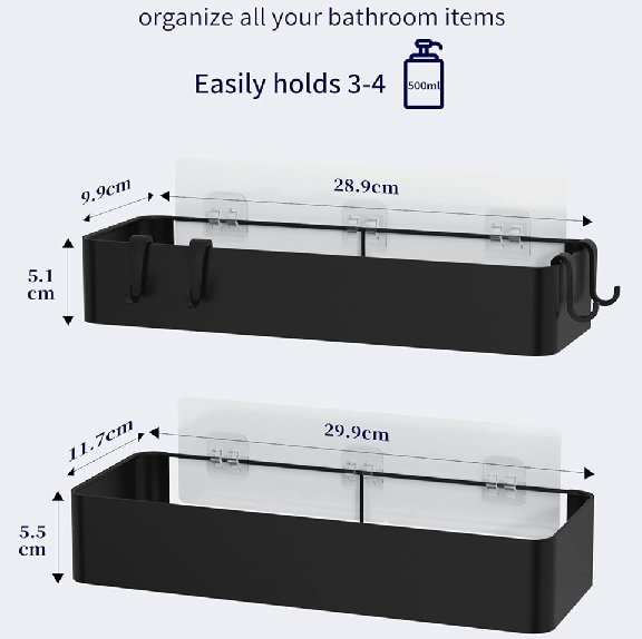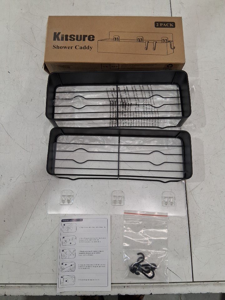 2PK KITSURE large SELF-ADHESIVE RUSTPROOF SHOWER CADDY - 2" X 4" X 11.5" - black