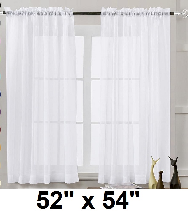 (2 PANEL) MYSTIC HOMES SHEER ROD POCKET CURTAINS - 52" x 54" - WHITE