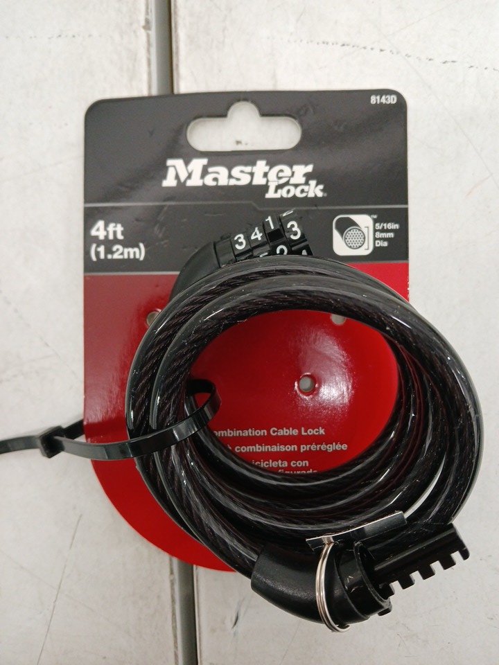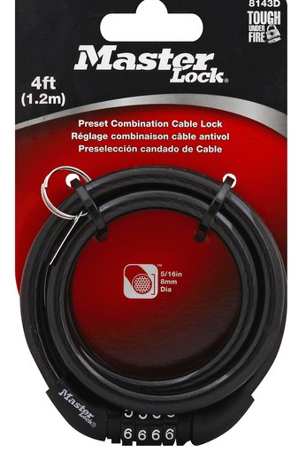 MASTER LOCK PRESET COMBINATION CABLE LOCK - 4FT - BLACK (MODEL: 8143D)