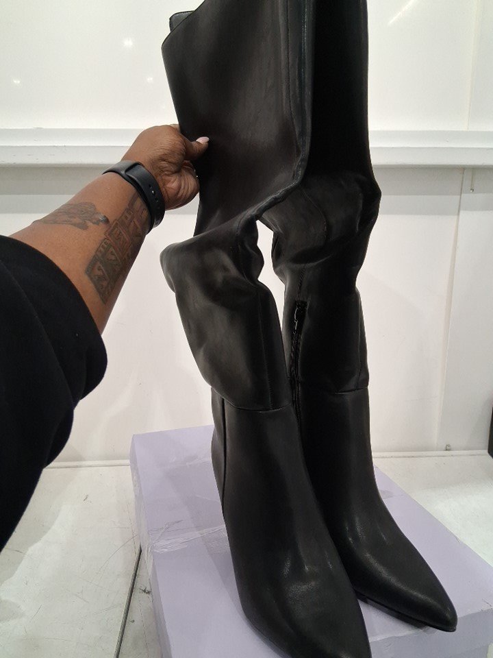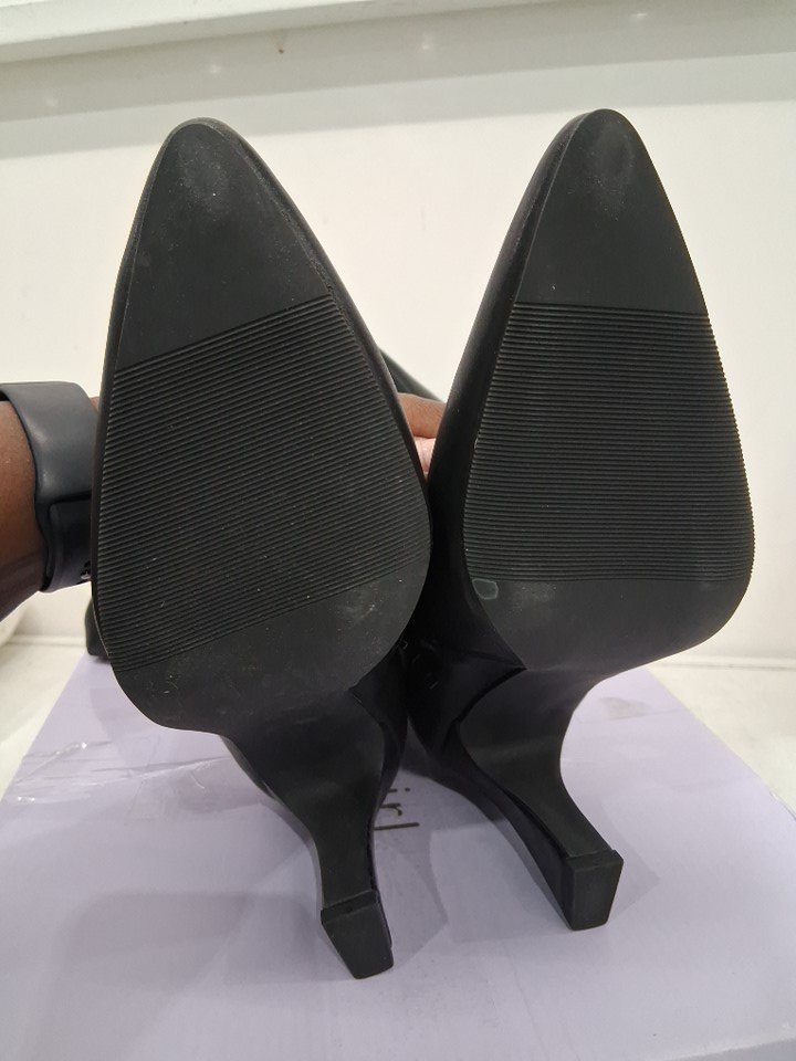 The soles of the shoes are slightly worn from previous use, as shown in the photo.
