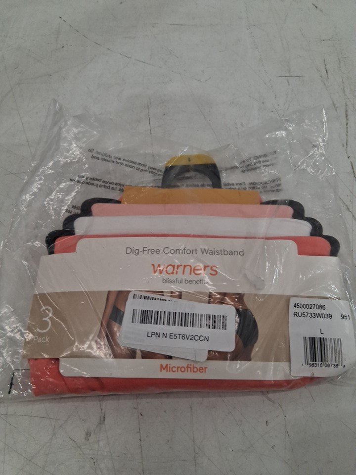 3pk women's Warners Blissful Benefits Dig-Free Comfort Waist Microfiber Hipster underwear- large - sugar coral/ peach glow/ WHITE (style: ru5733w)