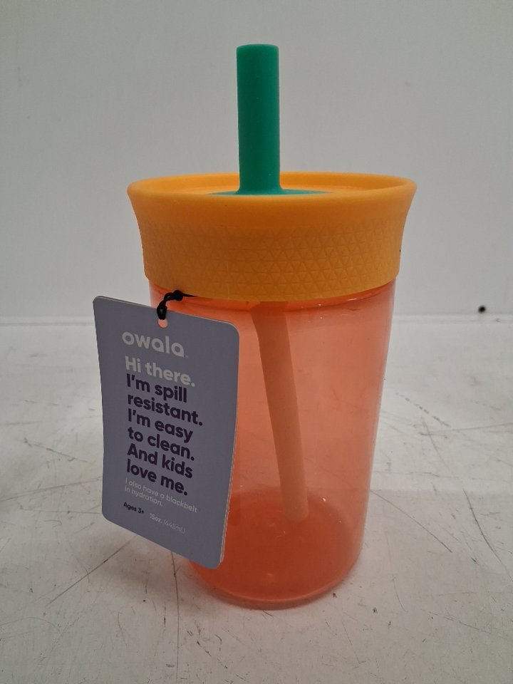 Owala Kids Insulation BPA-Free Plastic Tumbler with Spill Resistant Flexible Straw- 15OZ- ORANGE/ PEACH