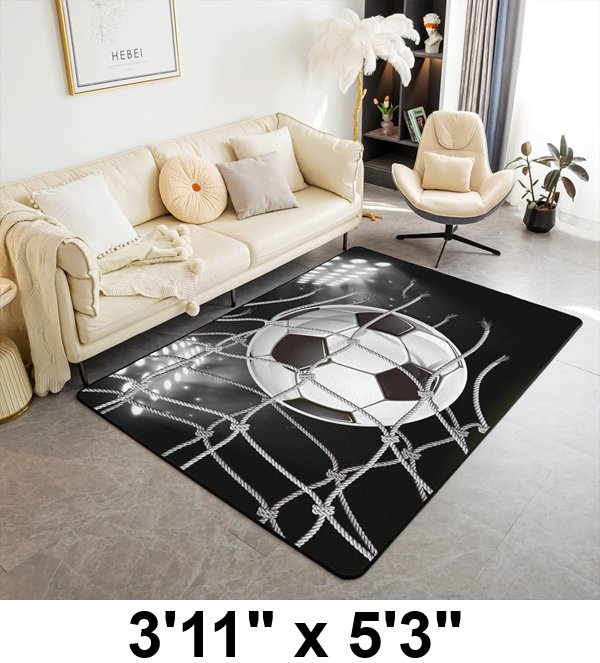 JEJELOIU football area rug - 3'11" x 5'3" (Rectangular) - black/white