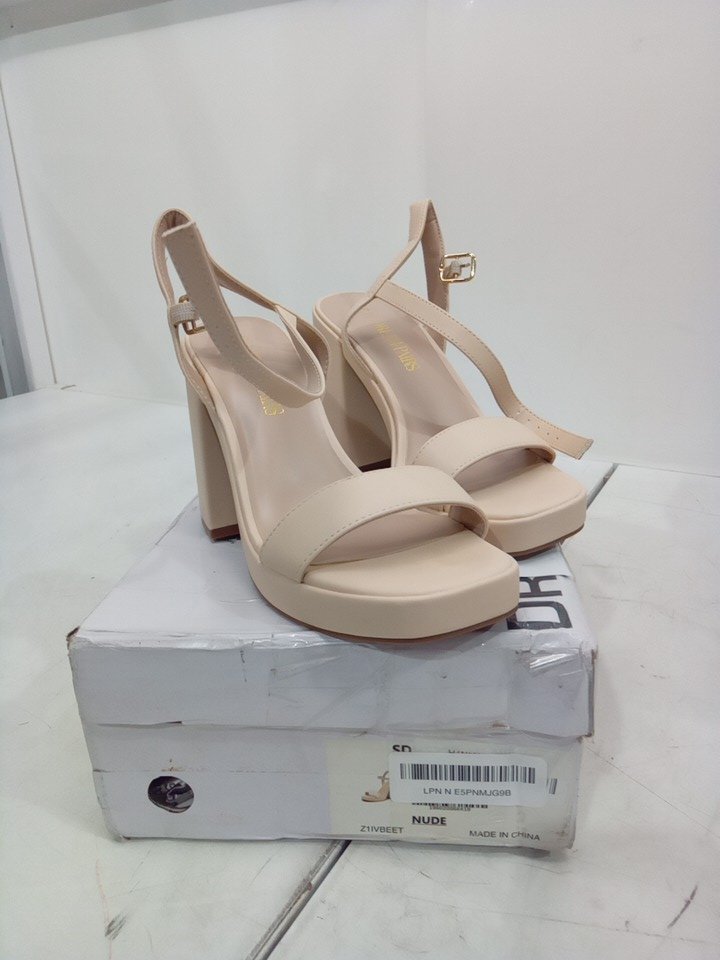 DREAM PAIRS Platform Chunky High Heel Sandals - 6.5 - NUDE