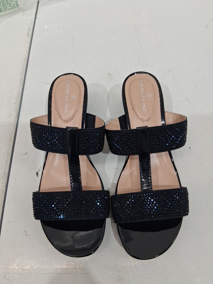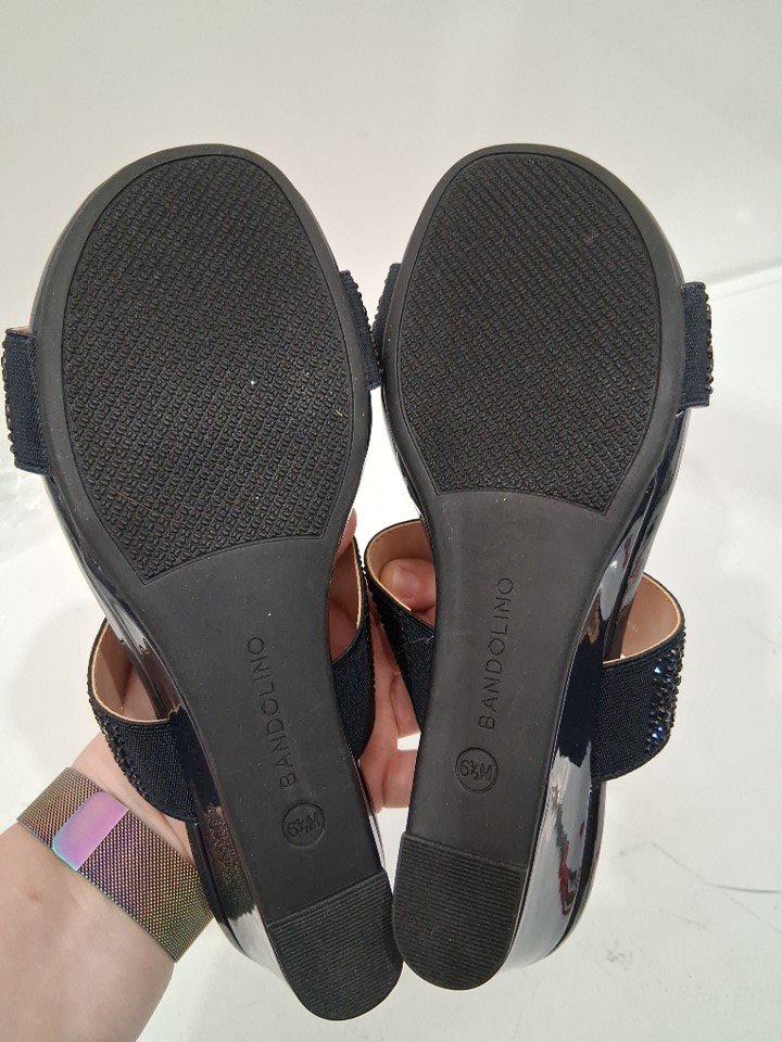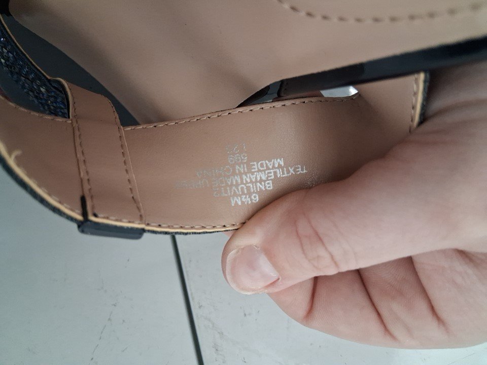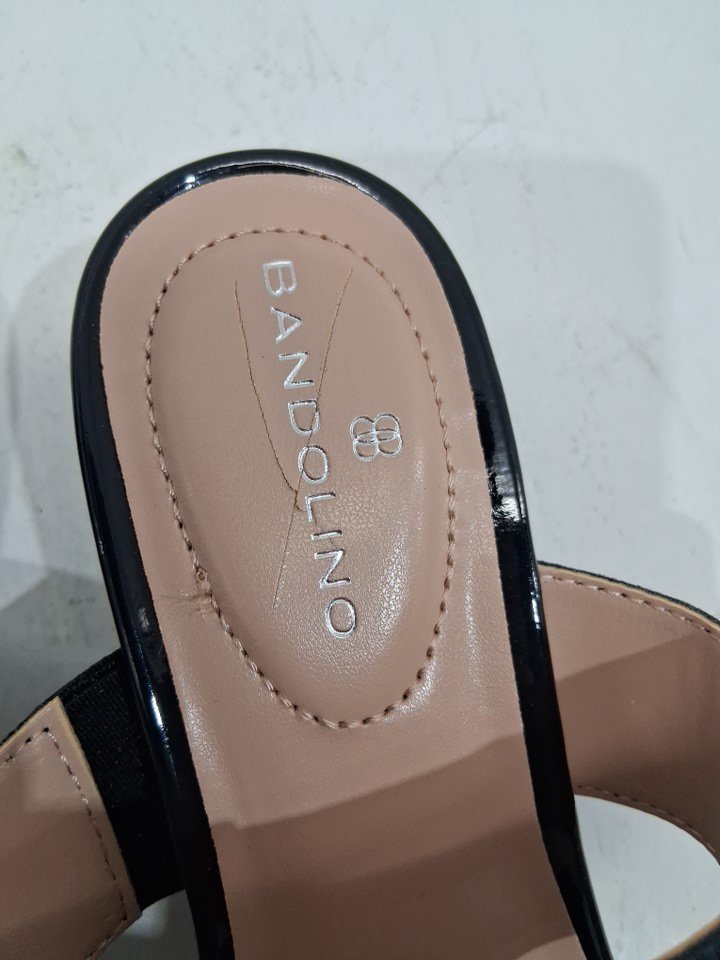 Item has slight cut in fabric on the heel of the inside sole. Item has light dust on bottoms of shoes.