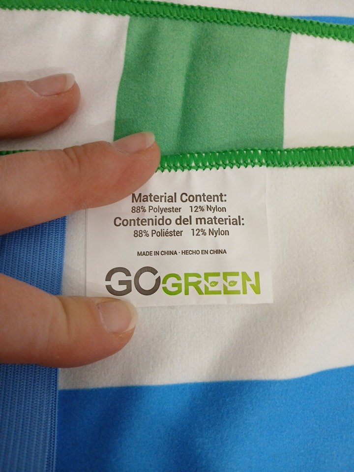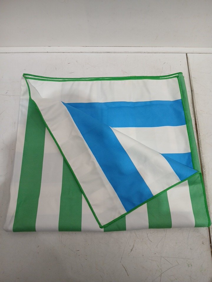 gogreen reversible quick dry sand-free microfiber towel - 71"x32" - blue/green/white stripes