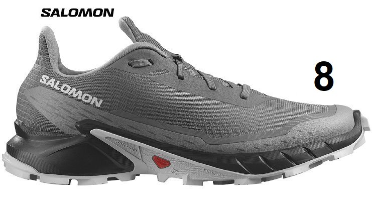 Men's salomon Alphacross 5 Trail Running Shoes - size 8- Pewter / Black / Ghost Gray