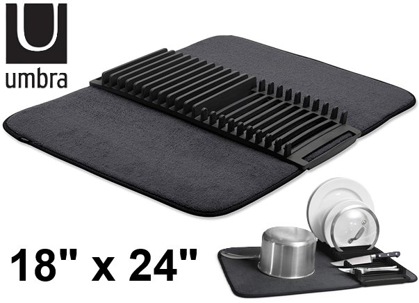 Umbra UDRY Rack and Microfiber Dish Drying Mat - 18" X 24" - GREY