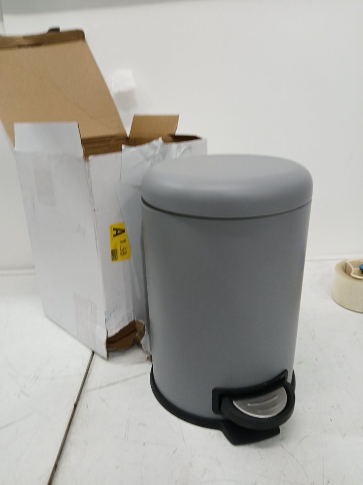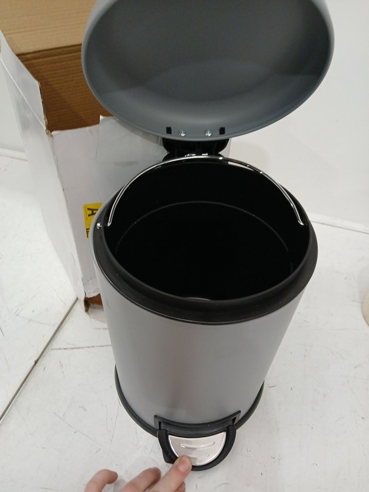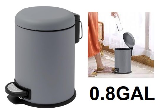 M-Aimee Round Stainless Steel Garbage Bin with Soft Close Lid & Step Foot Pedal Removable Inner Bucket-0.8GAL-GREY