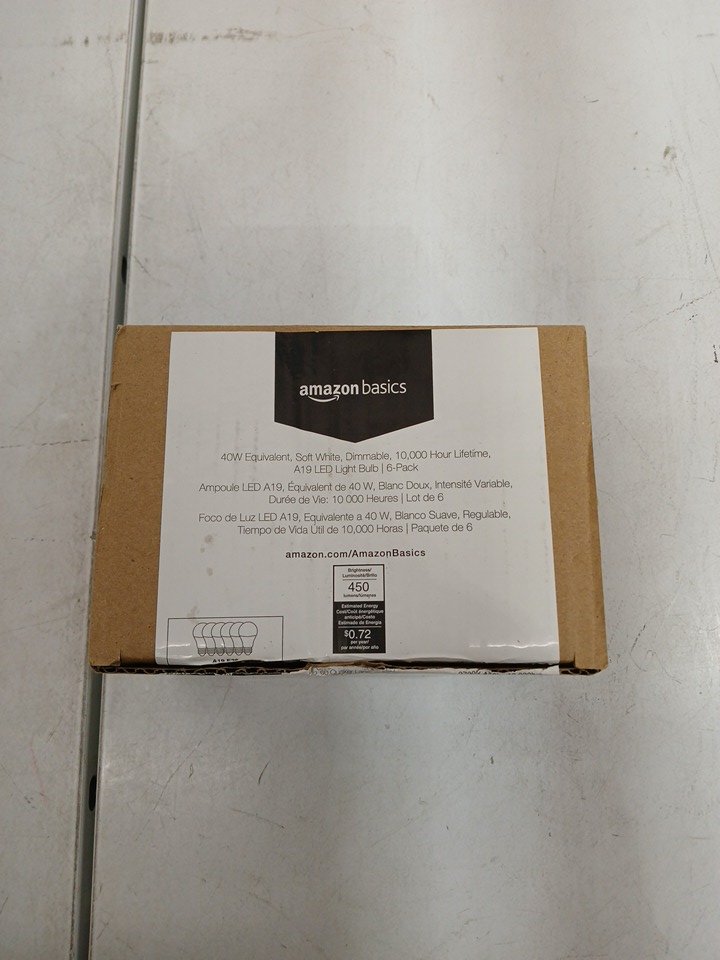6PK AMAZONBASICS NON-DIMMABLE A19 LED LIGHTBULBS - 6W/40W EQUIVALENT - 120V - 450LM - 2700K/SOFT WHITE