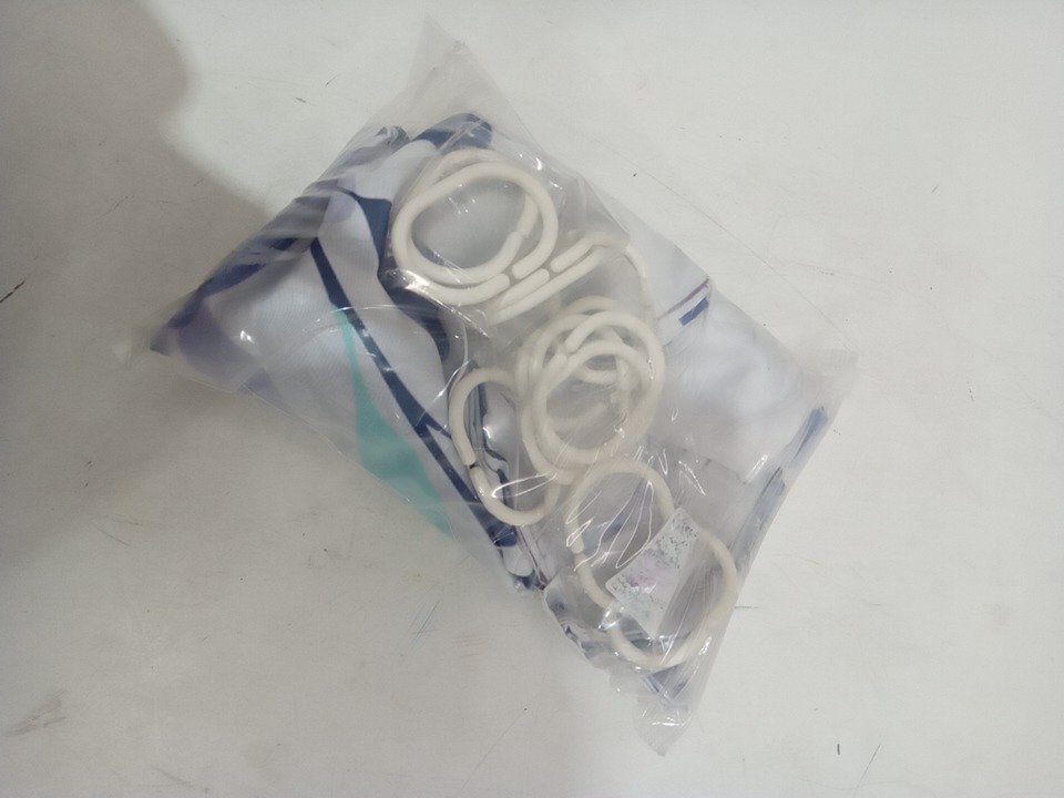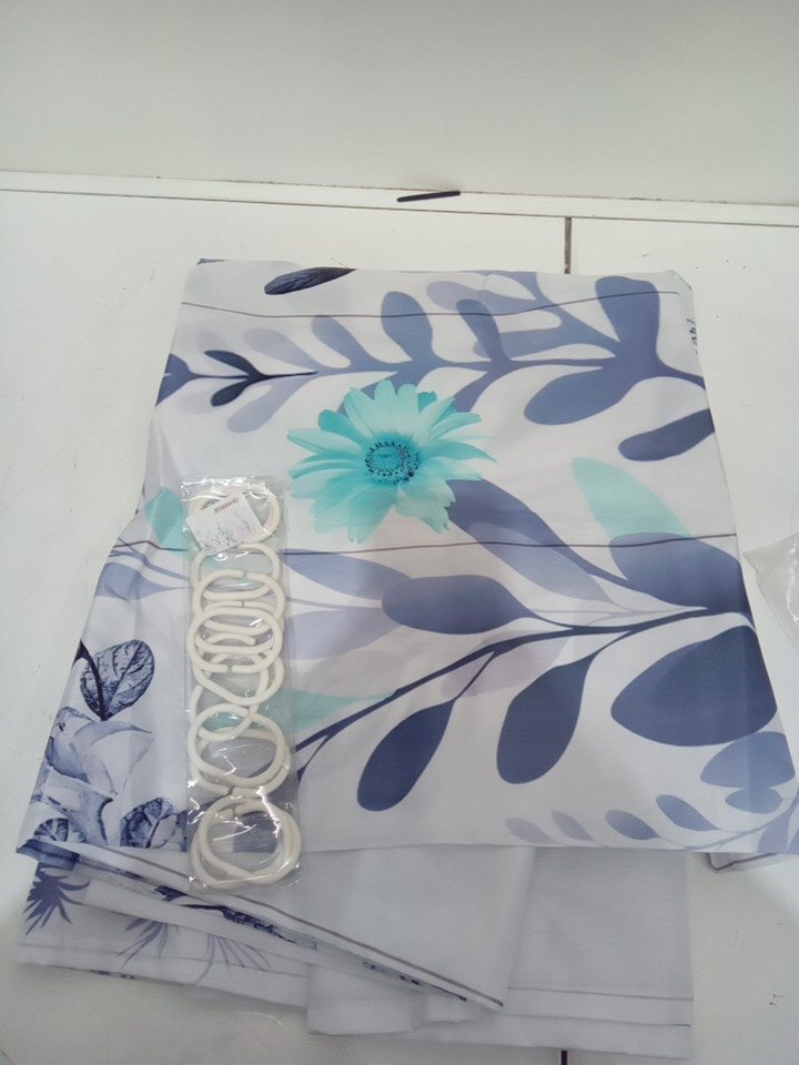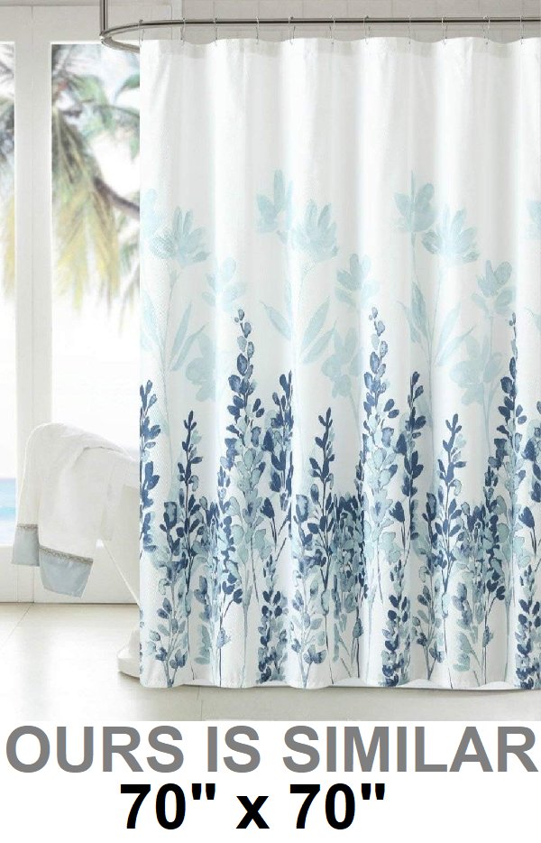 Fabric Shower Curtain with plastic hooks - 70" x 70" - white/blue floral