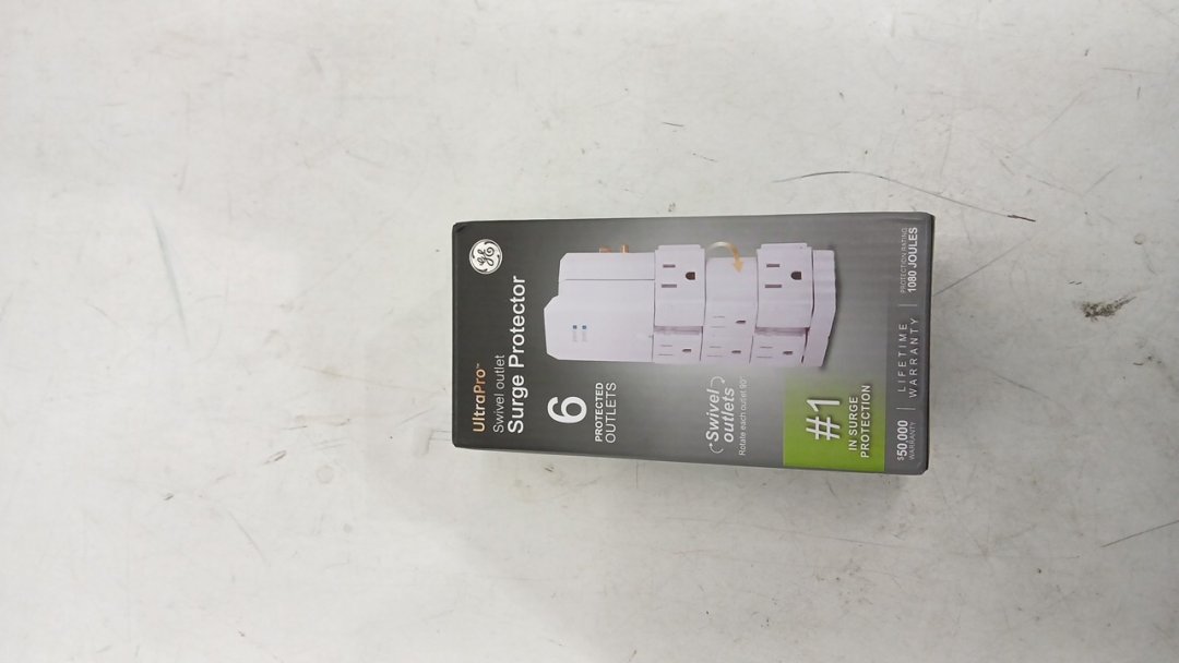 GE ULTRAPro 90° ROTATING 6 OUTLET SURGE PROTECTOR - 1080 JOULES -WHITE (MODEL: 37063)