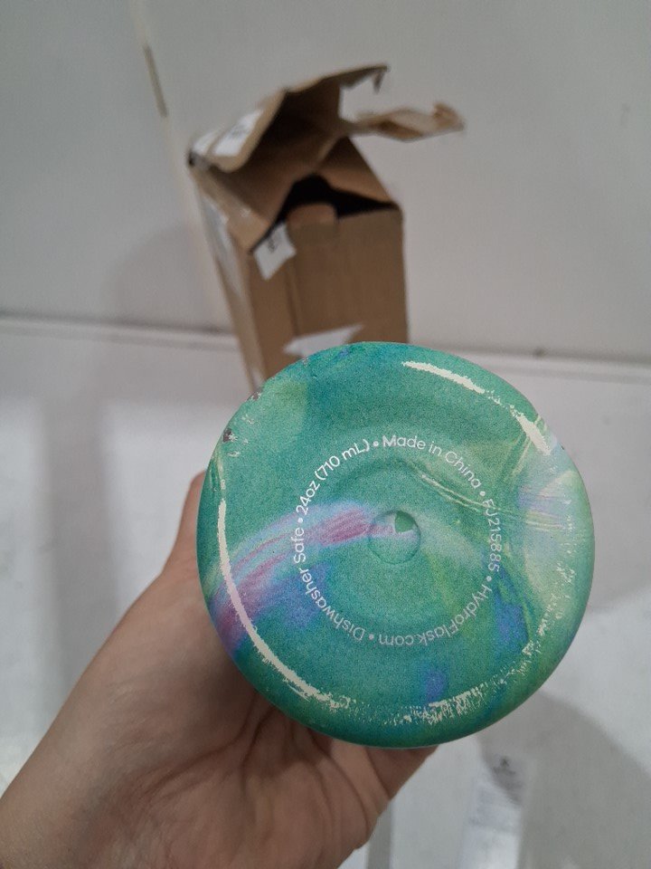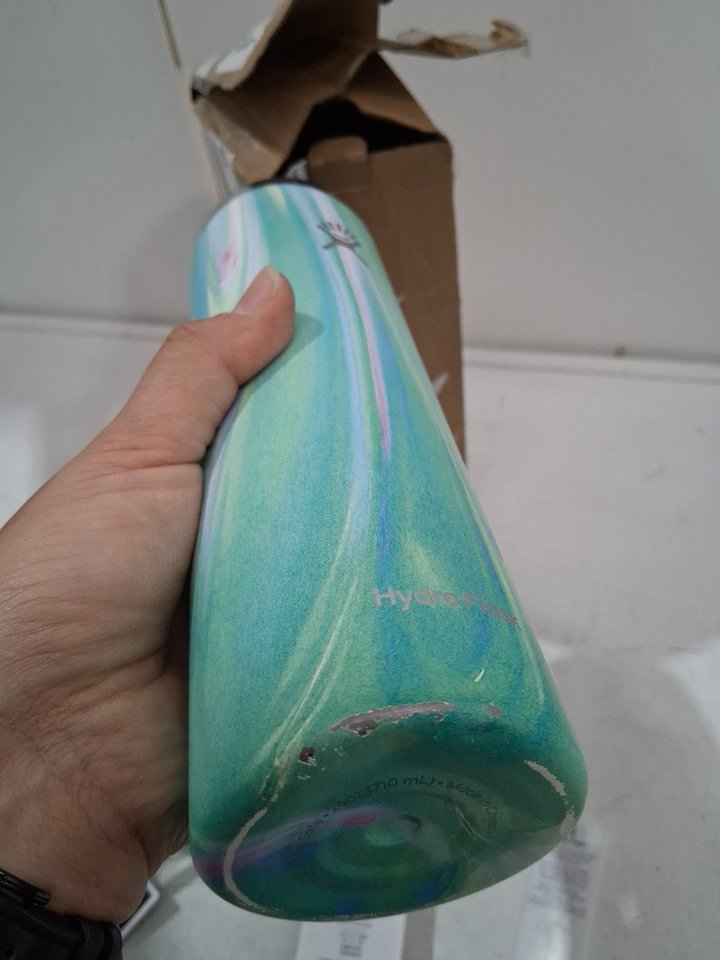 please note the bottle has a dent on the bottom and some chipping of the paint from distressed packaging