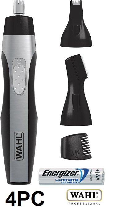 4PC WAHL Lithium Lighted Detailer - Ear, Nose, Brow Beard Trimmer - black/silver