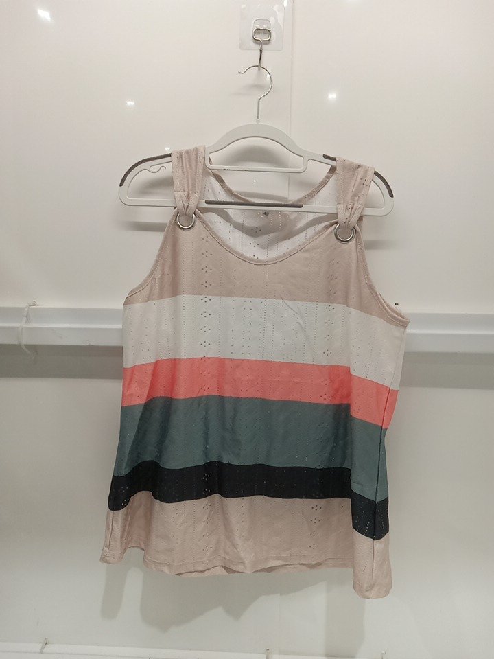 WOMEN'S Square Neck O Ring Shoulder Sleeveless Blouse - LARGE - MULTICOLORED