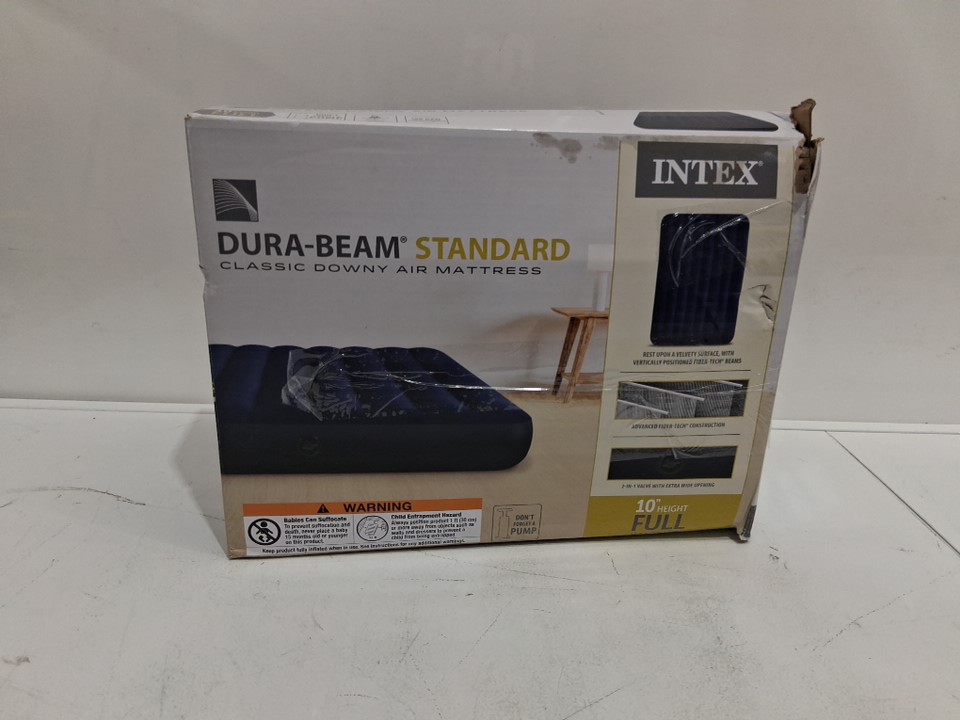 INTEX DURABEAM STANDARD DOWNY AIR MATTRESS - 300LB WEIGHT CAPACITY - 10" THICK - full - blue/GREY (MODEL: 64758E)