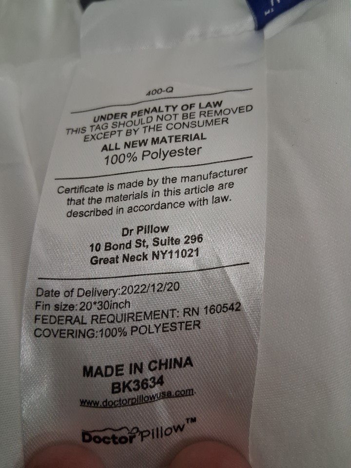 DOCTOR PILLOW DREAMZIE ADJUSTABLE FILLING PILLOW FOR ALL SLEEPER TYPES - 16"x26" - WHITE