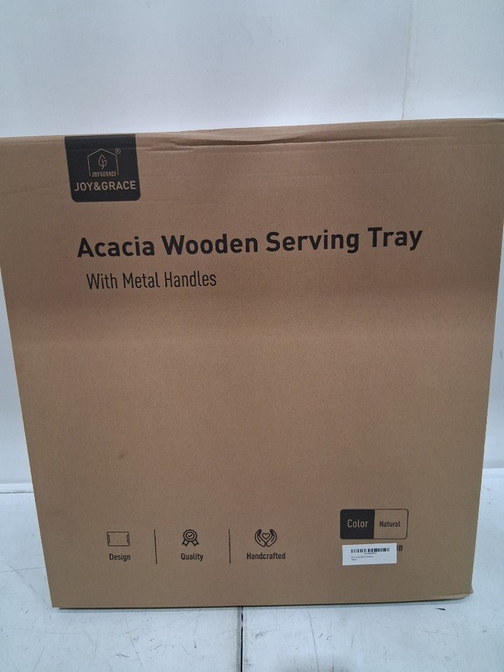 JOY&GRACE ACACIA WOODEN SERVING TRAY WITH METAL HANDLES - 17" X 12" X 2"