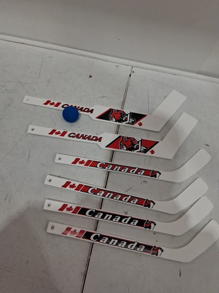 7PC CANADA RED MINI-HOCKEY STICK SET with 6 STICKS AND A BALL - WHITE/BLACK/red