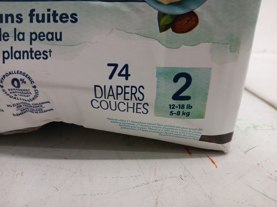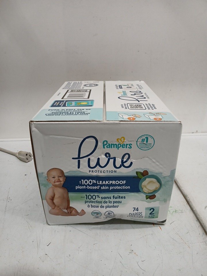 74PK PAMPERS PURE PROTECTION hypoallergenic DIAPERS - size 2 (12LB-18LB)