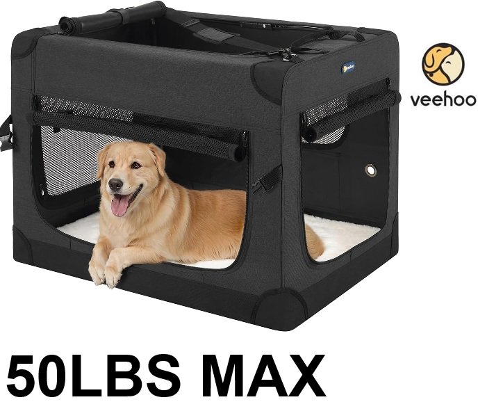 Veehoo 4-Door Portable Folding Soft Dog Crate with 5 Durable Mesh Screen for large dogs - 36" - black (model: CWB2428CP)