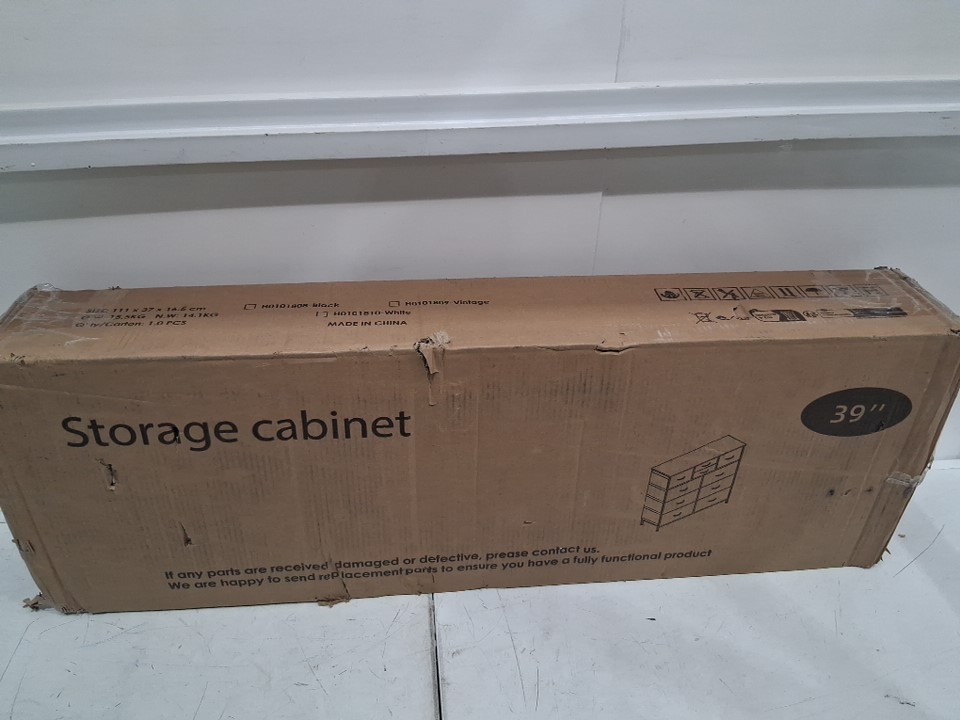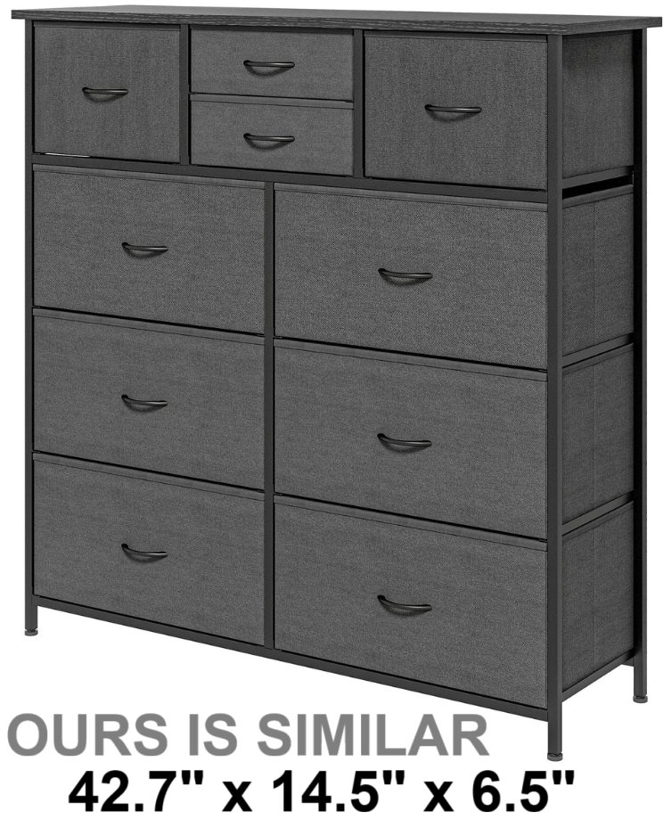 10 drawer fabric storage cabinet/dresser with steel frame - 42.7"x14.5"x6.5" - vintage/woodgrain - (Model: H0101809-vintage)