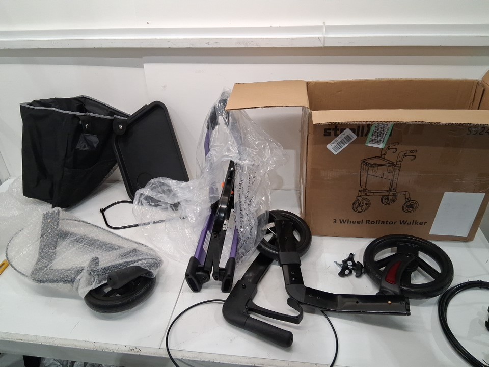 strollaid foldable 3-wheel rollator walker - 350LB MAX - Purple/black (model: s9241)