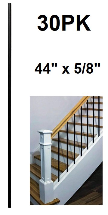 30pk decorex hardware iron stair railing balusters - 44" x 5/8" each - black (model: DH-28)