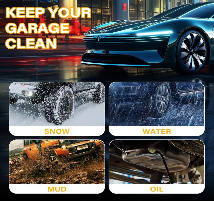 anweor Upgraded Imitation Leather Non-Slip Waterproof Garage Floor containment Mat for Under Car with squeegee - 18ft x 7ft9" - black