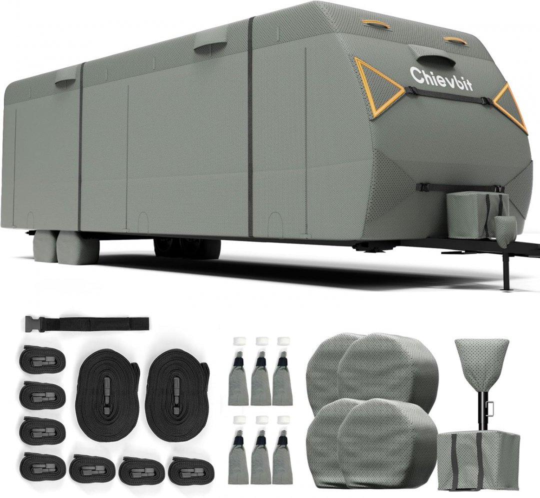 Chievbit Large RV Cover with Wheel Covers - 18FT-20FT - Stone Grey