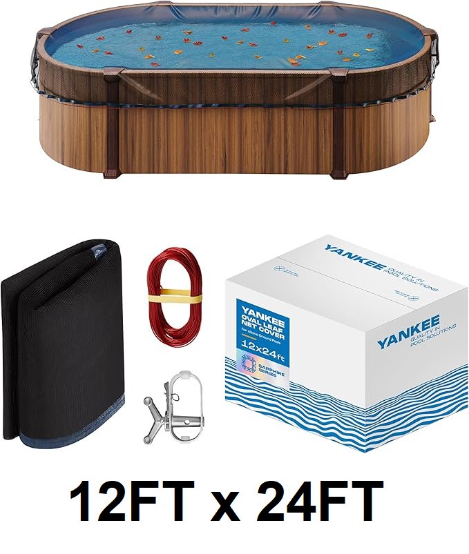 yankee pool leaf net cover for oval pools - 12ft x 24ft - black (model: ypc-olf-1224)