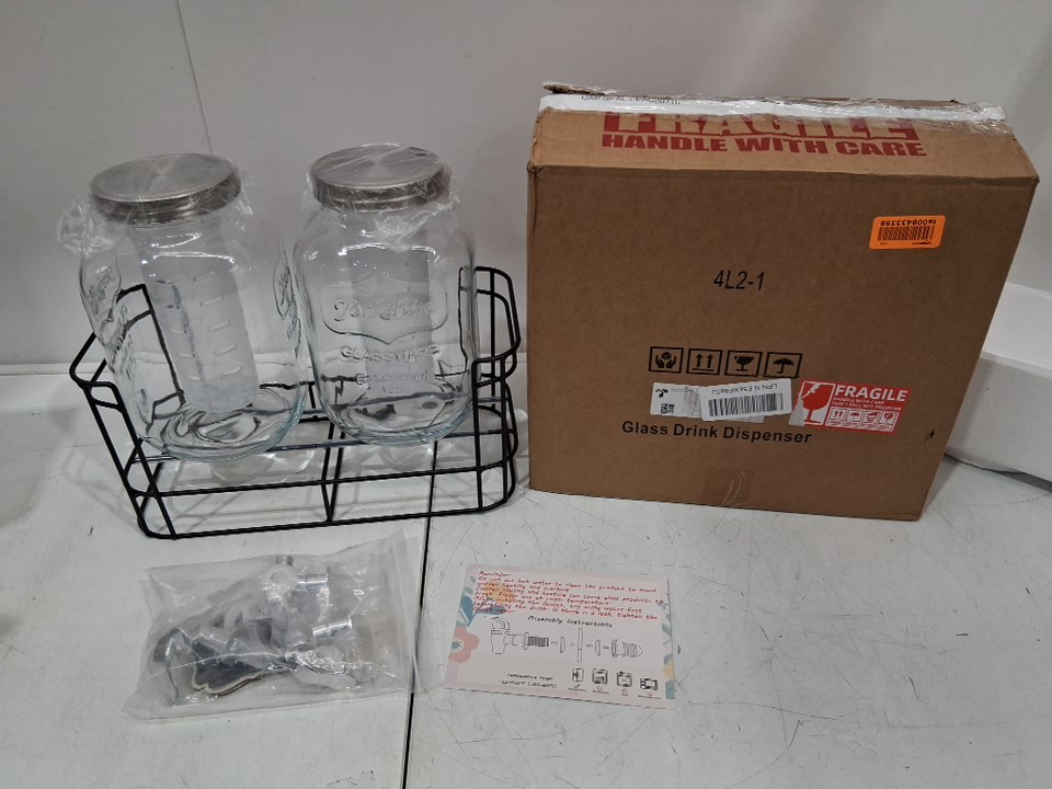 2PC Glass Mason Jar Double Beverage Drink Dispenser On Metal Stand With Leak Free Spigot - 1gal each - glass/silver/black