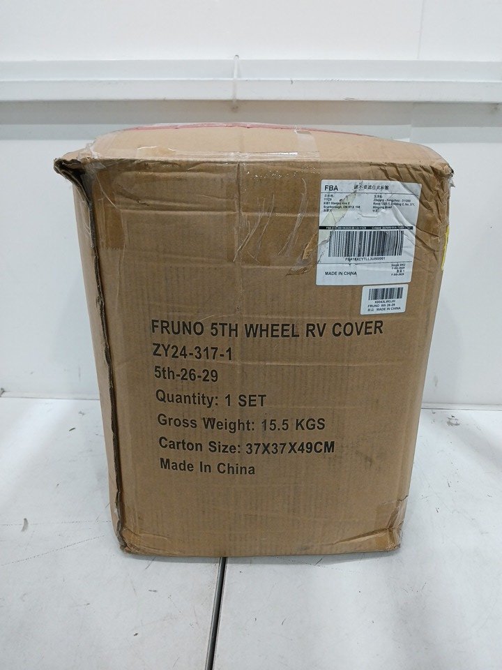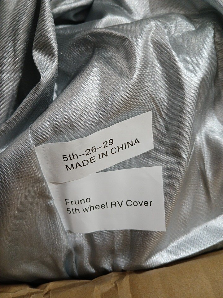 fruno oxford fabric weather resistant anti-uv 5th wheel rv cover with jack cover, 4 tire covers, and gutter covers - fits 26ft to 29ft - white/silver/black (model: ‎F-5th-2629)